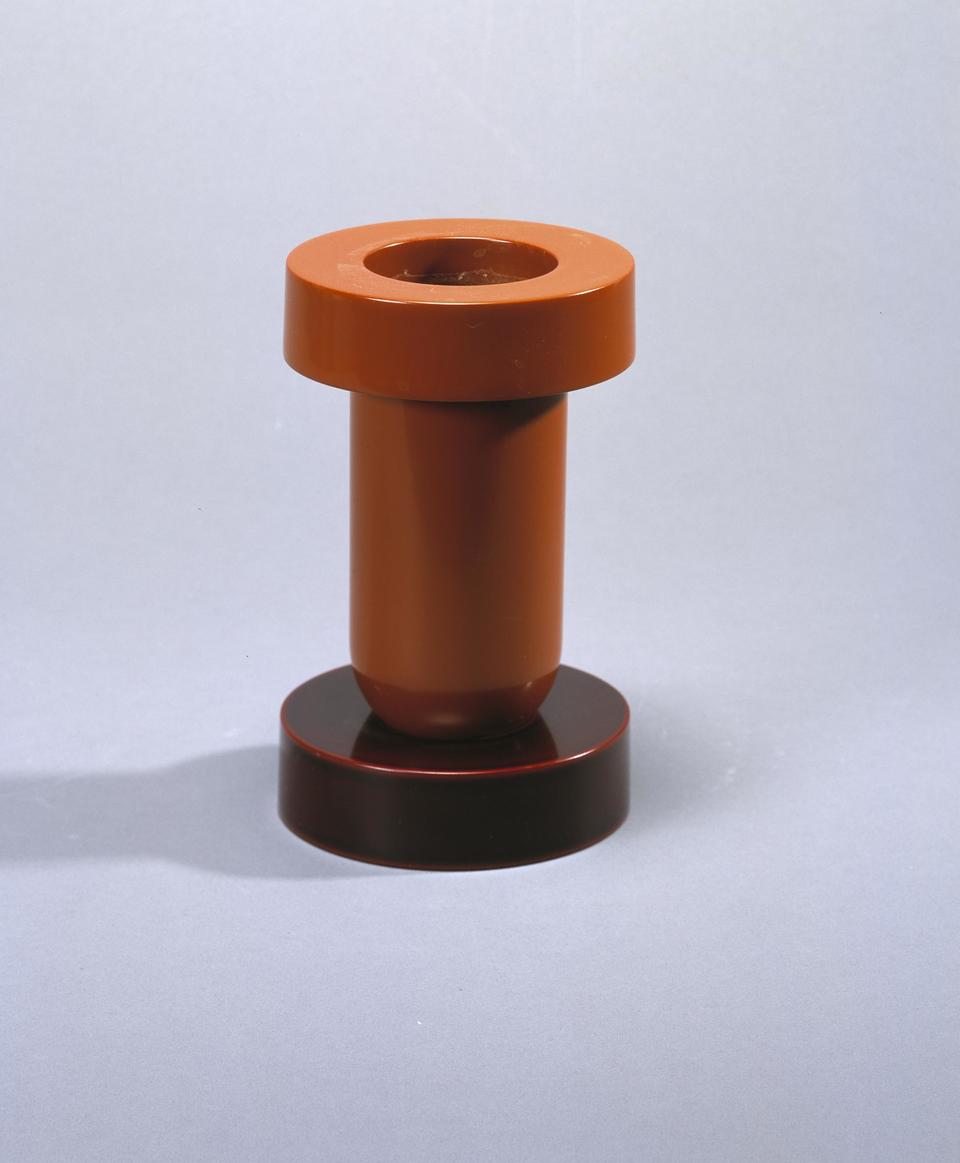 Le vase Mirto en résine phénolique et poudre de bois recouvert de laque urushi fait partie de la collection d'objets conçue par Ettore Sottsass pour Marutomi, Japon. L’architecte et designer italien Ettore Sottsass (1917-2007) s’est confronté durant les années nonante à la tradition séculaire de l’artisanat japonais, l’Urushi Kogei. Dans un long processus d'échange intellectuel et de découverte de la forme, il a conçu- en étroite coopération avec l’élite des maîtres japonais spécialisés dans cette technique hautement sophistiquée – des conteneurs et les objets incarnant la modernité de l’Occident et l’esprit de l’Extrême-Orient, l'esprit italien et le raffinement japonais.