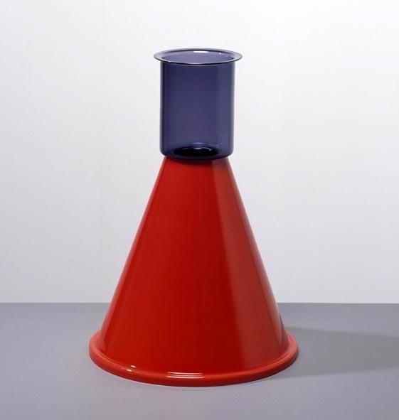 Avec le verre, Ettore Sottsass poursuit le même rapport aux sens et à la vitalité qu’avec la céramique. Dès 1974, il réalise de très beaux dessins pour les ateliers Vistosi à Murano. Il collaborera ensuite avec Toso et Venini pour des créations liées au groupe Memphis. Tradition, maîtrise, savoir-faire et prestigieuses collaborations sont les maîtres mots qui ont conduit Venini à devenir le plus important atelier verrier de Murano. Fondé en 1921 à Venise par Paolo Venini et Giacomo Cappellin, l’atelier devient rapidement la firme vénitienne la plus influente du XXe siècle, grâce notamment aux illustres collaborations avec les artistes les plus importants des XXe et XXIe siècles et soutenus par le savoir-faire des meilleurs artisans de l’île. Ces échanges feront de Venini le symbole de l’innovation et du sens artistique de l’art du verre. A travers ces expériences multiples de l’atelier, Ettore Sottsass invente lentement une histoire personnelle avec un matériau qui le fascine. C’est ce qui lui fait dire: « J’ai commencé à concevoir des objets de petites dimensions. Très lentement, je me suis libéré des axes de symétrie, en inventant de petits éléments à coller (sacrilège aux jeux des maîtres anciens) le long des axes que je déplaçais. J’ai imité la technique utilisée jadis pour construire les énormes lustres, en «agençant» avec des fils métalliques ces petits éléments, ou en les «encastrant» les uns dans les autres. J’utilisais les mêmes techniques, mais toujours en brisant les axes de symétrie. Lentement, je commençais à connaître le verre. Nous sommes devenus amis. Nous nous racontions mutuellement nos rêves et notre désir de liberté. Nous avons décidé que nous avions un long chemin à parcourir...de fait, il y avait tout à découvrir. Il y a toujours tout à découvrir.»