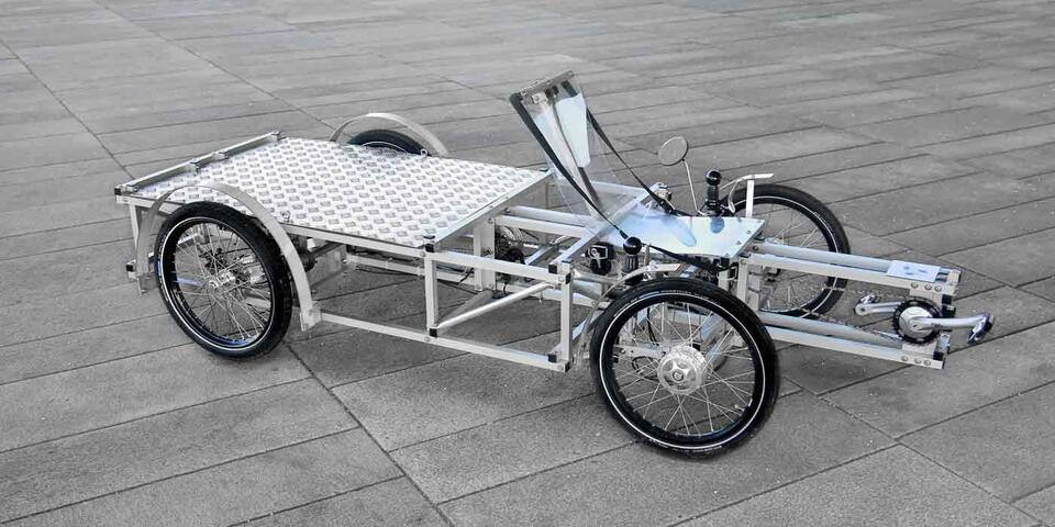 Le XYZ CARGO FOURWHEER peut être utilisé pour la logistique ou personnalisé pour tout autre usage : une large gamme de modules fonctionnels est disponible, les transformant en cycles de streetfood, en unités d'espace mobiles ou en véhicules pour tout autre usage. Dimensions : 270 x 100 cm (LxL - autres longueurs sur demande)