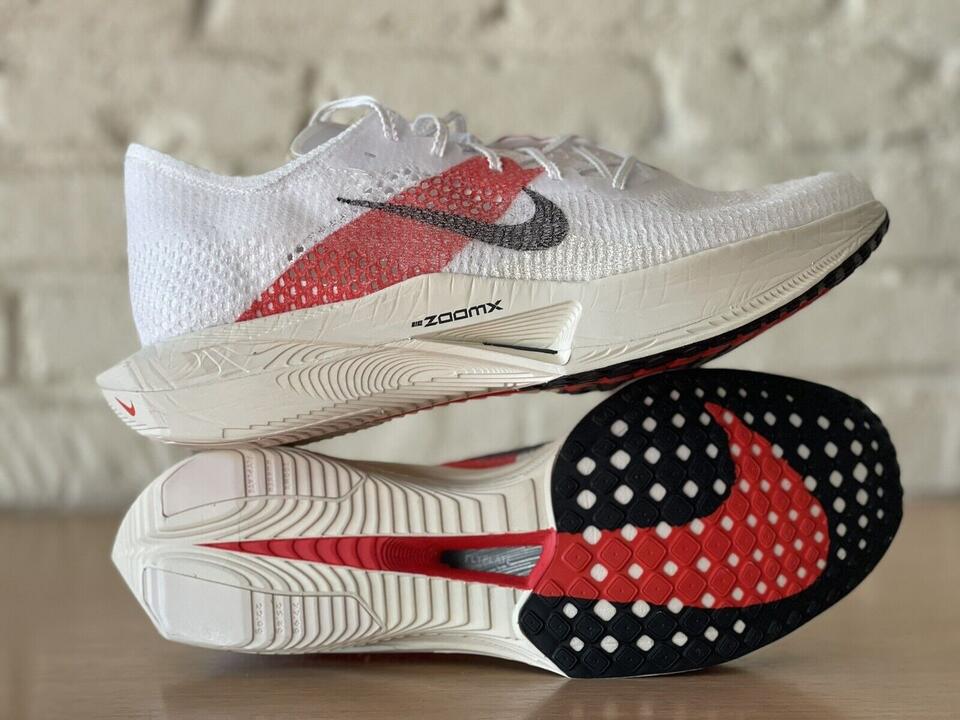 Chaussures de course à pieds composée d'une semelle intermédiaire en mousse et d'une plaque en fibre de Carbone pour maximiser l'efficacité de la foulée en fournissant un retour d'énergie. Les athlètes portant les Vaporfly ont réalisé des performances exceptionnelles. Surtout au marathon qu' Eliud Kipchoge a couru en moins de 2h (1h59) en 2019.
