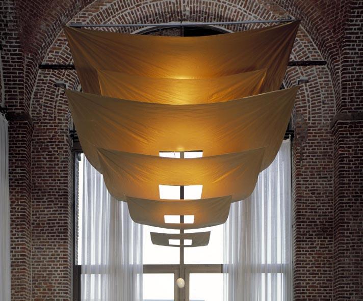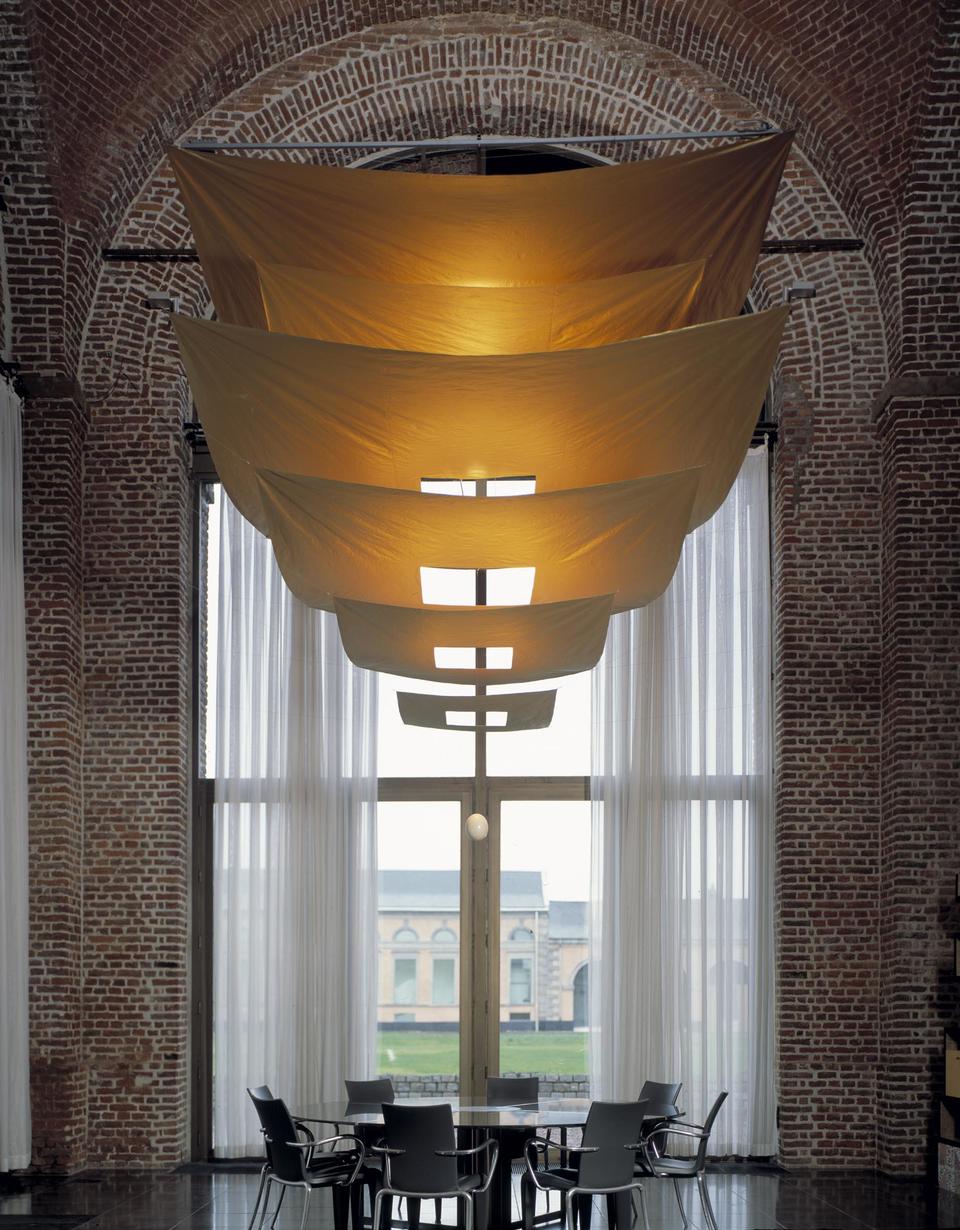 Luminaire • 2004 • Ingo Maurer GmbH (DE) • H : 300 cm L : 300 cm l : 300 cm • 6 éléments de tissu, métal, or, œuf d’autruche