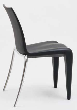 Philippe Starck joue sur le contraste des matériaux en combinant depuis la fin des années quatre-vingt le plastique et l’acier tubulaire. Pour la Chaise Louis XX, le contraste est saisissant. L’assise bombée en son centre, typique de Starck, pose sur des pieds avant volumineux en plastique creux tandis que le piétement arrière se compose d’acier tubulaire gracile. Le nom de Louis XX est une référence humoristique à un hypothétique roi français donnant son nom à un style de meuble à venir.
